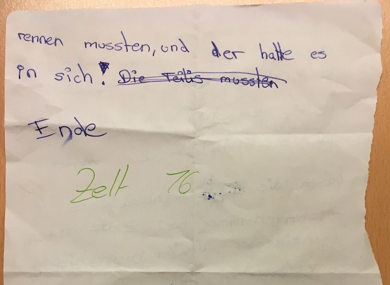 Die Teilis aus Zelt 16 beschreiben den Tag aus ihren Augen so: